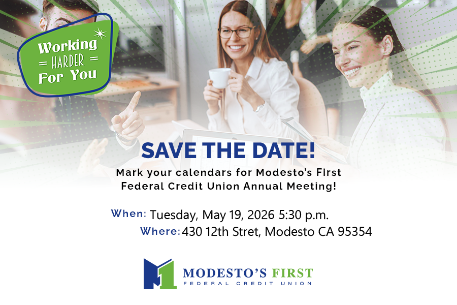 Mark your calendars for Modesto’s First Federal Credit Union Meeting, scheduled for Tuesday, May 19, 2026 at 5:30 p.m.